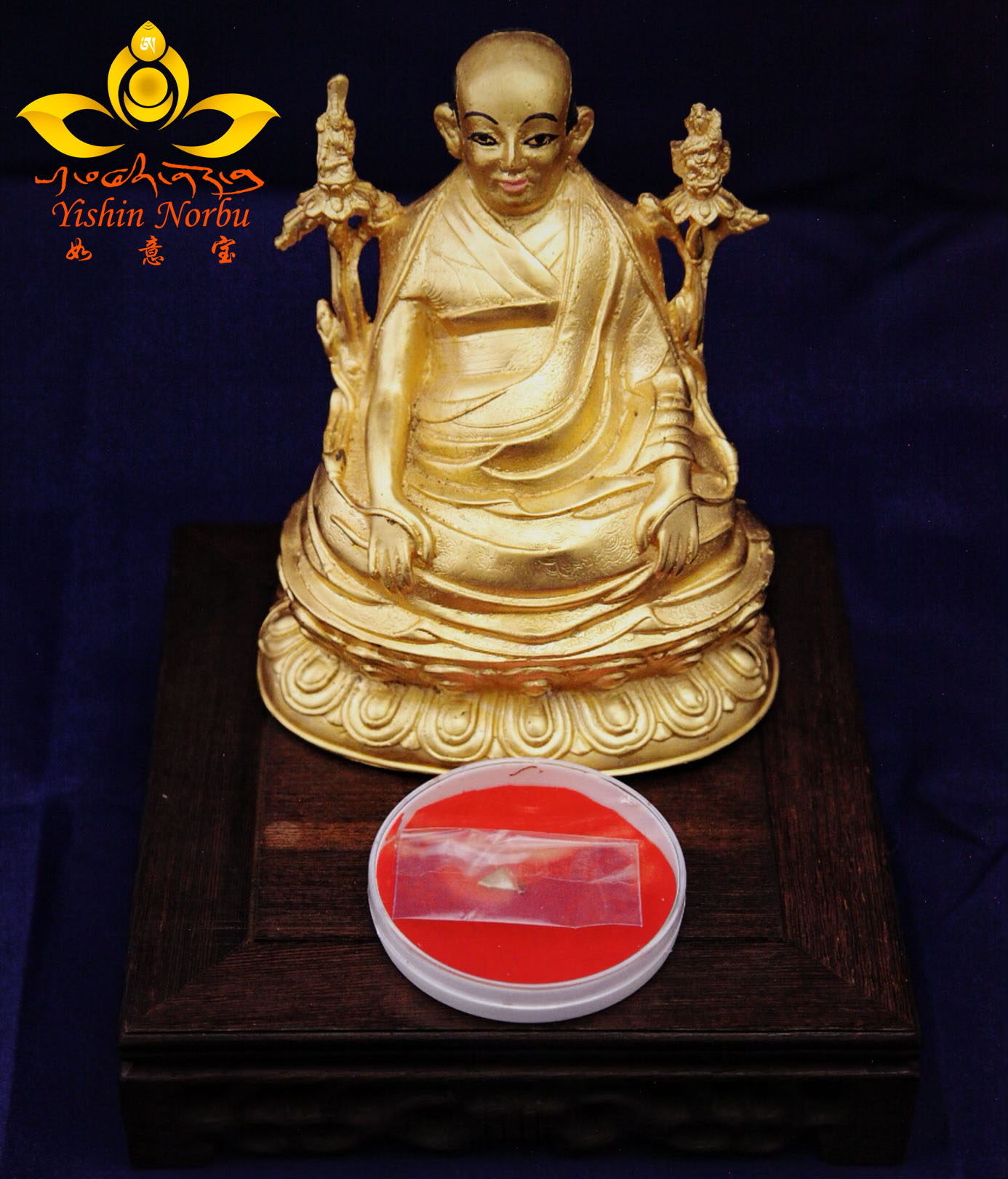 16 The statue of H.H. Jigme Phuntsok,which is hidden in the hair, nose blood, vestments and relics of H.H. Jigme Phuntsok 法王如意宝头发、鼻血、法衣、舍利骨等装藏的法王像